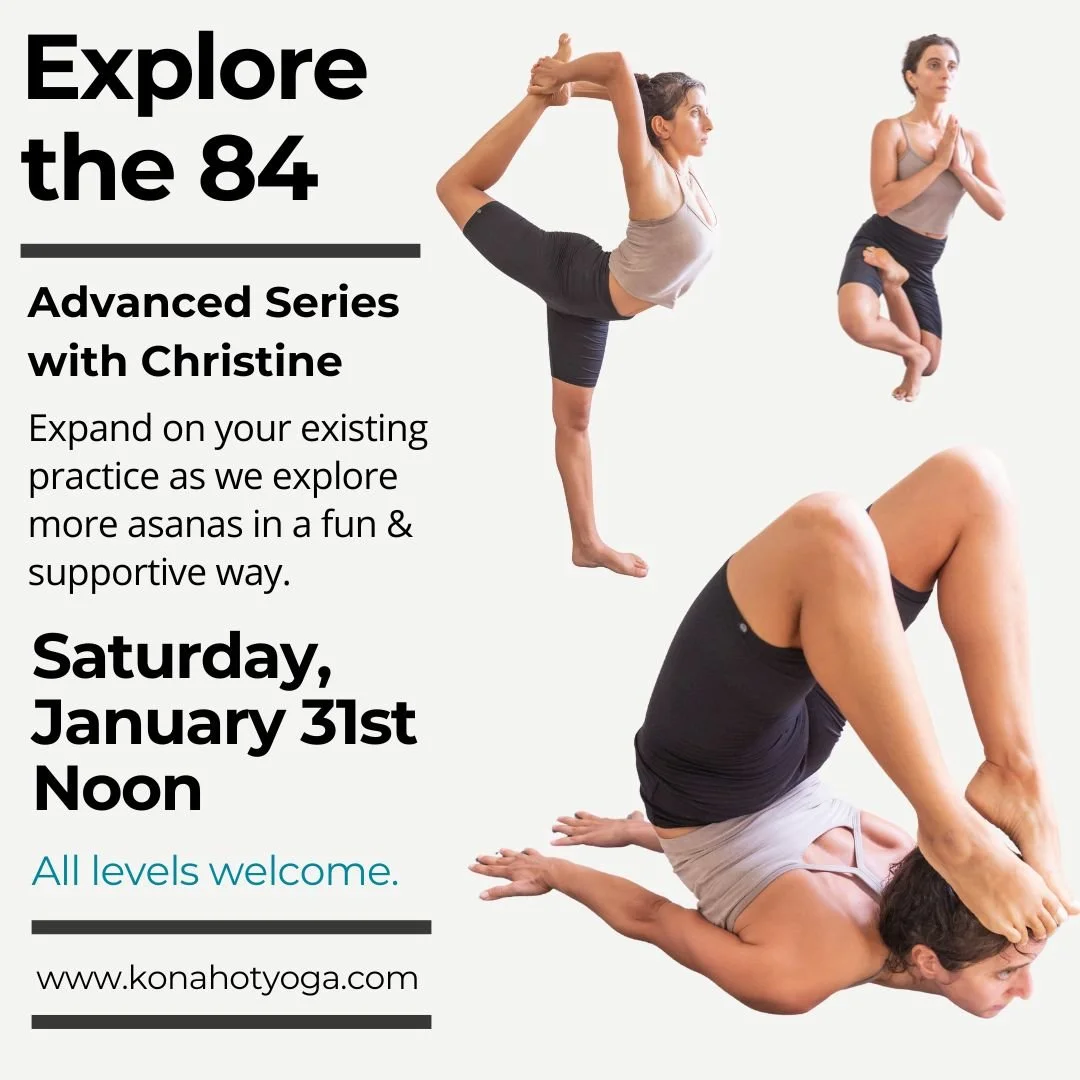 Expand on your existing yoga practice as we explore the 84, also known as the advanced series. This class is the complete 84 asanas of the Ghosh lineage. The practice begins with Salute to the Gods and Goddesses, Salute to the Sun, and Salute to the Moon, when together as one continuous flow. We then move through the standing series, lotus series, double sided series and more. Everyone is welcome to join and see what is possible. This class is included in your monthly membership, drop ins welcome or use your class packages.